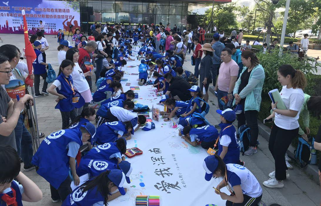 来自北京师范大学沈阳附属学校的红领巾舆情观察联盟成员及家长共计200余人在全运村社区广场整齐列队,活动由浑南区教育局团委书记王璐主持,活动开始,全体人员齐唱国歌,全场情绪激昂,少先队员代表为与会领导佩戴红领巾之后,由红领巾舆情观察联盟成员、北师大沈阳附校四年一班王尔彧同学及他的母亲赵春丽代表少先队员和家长共同宣读了“三城联创”倡议书,向全区少先队员和家长们发出倡议,为“三城联创”做出自己的贡献。沈阳团市委少年部部长姜正伟将“浑南区三城联创小小志愿者服务队”的旗帜授予红领巾舆情观察联盟。随后,新一批红领巾舆情观察联盟成员集体宣誓。仪式环节结束之后,所有同学及家长进行“童手绘浑南”活动,在30米的长卷上共同书写和绘画孩子们心中美丽的浑南,五彩缤纷的颜色绘画出孩子们的童真和对家乡的热爱。最后,少先队员与家长们展开了“小手拉大手”“三城联创”志愿服务行动,大家在全运社区内捡拾垃圾,清理擦拭健身器材、公共施设。(团区委供稿)