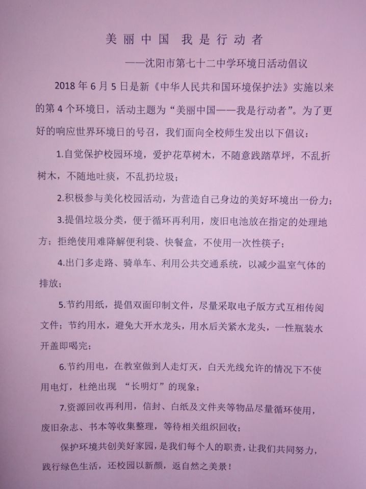 做三城联创小标兵做环境保护小卫士——沈阳市第七十二中学开展环保主题实践...