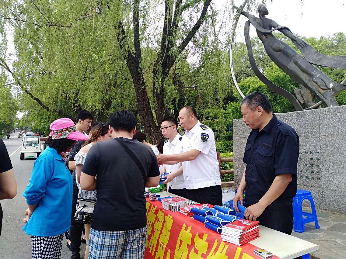 6月7日,浑南区安监局联合区旅游局、旅游集团在世博园(植物园)进行安全知识普及宣传,向过往游客发放安全知识宣传材料,当天共发放宣传材料260余份。(图为安监局工作人员向过往游客发放宣传材料并讲解安全知识)(区安监局供稿)
