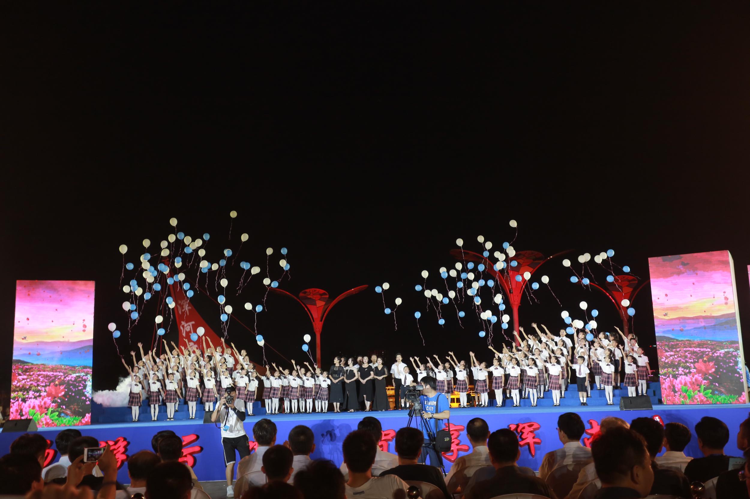 浑南一校的节目是晚会的开篇明义,也是唯一非艺术专业团体的演出,分为主持人叙述、八位教师代表朗诵《浑南赋》、师生合唱《不忘初心》等精彩桥段,将浑南区的悠久历史、悠悠文脉、壮阔盛景、发展成果和美好前景以赋文抒发至极,感人至深。