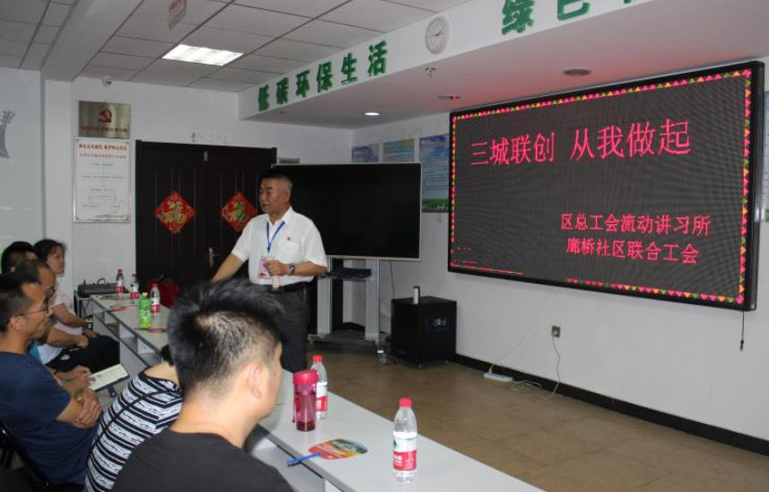 按照《方案》的工作内容和责任分工,7月13日,区总工会走进了东湖街道杨官屯、桃仙街道合作社区和五三街道张官经委会进行“三城联创”有奖问答活动。区总工会流动讲习所“三城联创”志愿宣讲员走进廊桥社区开展创城知识宣讲。