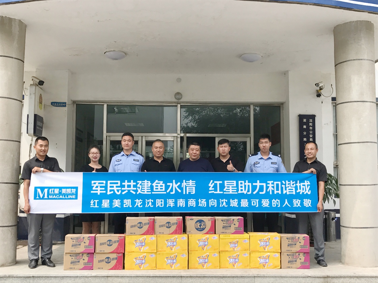 在中国人民解放军建军91周年来临之际,近日,沈阳红星美凯龙世博家居有限公司党工团代表赴沈阳市浑南区消防中队和沈阳市公安局浑南站东派出所开展“军民共建鱼水情红星助力和谐城”迎“八.一”送清凉慰问活动。