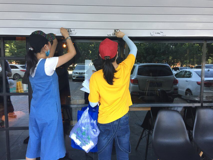 活动中,在社区书记刘红的带领下,大家携带铲刀、涂料等工具针对商户门市网点以及卷帘门上的小招贴进行集中清理。对易于清理的纸质招贴用手撕下来,对难清理的则用涂料进行遮盖,同时向商户发放《致商户的一封信》、违规处罚提示、商户志愿者承诺书等宣传材料。经过志愿者们全天共同的奋战,共走访商户72家,发放“三城联创”宣传材料288份,清理商户卷帘门上的小招贴共计2000余处。