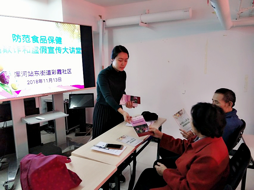 为进一步营造“创建国家卫生城市”、“建设国家健康城市”、“创建国家食品安全示范城市”浓厚氛围,引导广大居民注重食品安全,提升居民自我防护能力,保障身体健康, 11月13日上午,彩霞社团支部开展“防范食品保健食品欺诈和虚假宣传大讲堂”活动。