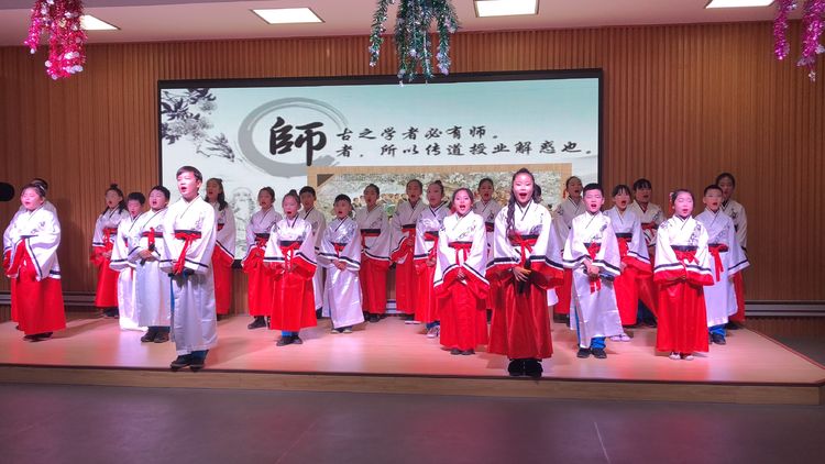 各班学生身穿各色的演出服,化着精致的舞台妆,精神饱满、举止大方、激情高昂,以背诵、朗读、诵唱等形式演绎经典。每个节目都浸透着老师和学生们的汗水和智慧,有优美的音乐烘托气氛,亦有动人的舞蹈锦上添花,用心诠释,渐入佳境。孩子们吟诗诵词,时而摇头晃脑、时而昂天长歌、时而赞义扬智、时而婉柔轻述、时而激情澎湃……