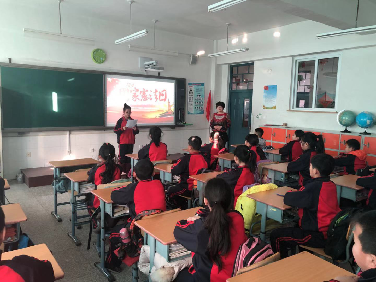 12月4日,各中队利用晨读时间,组织了宪法晨读活动,选择宪法序言及正文中的适当章节、条款,组织学生集体朗读。