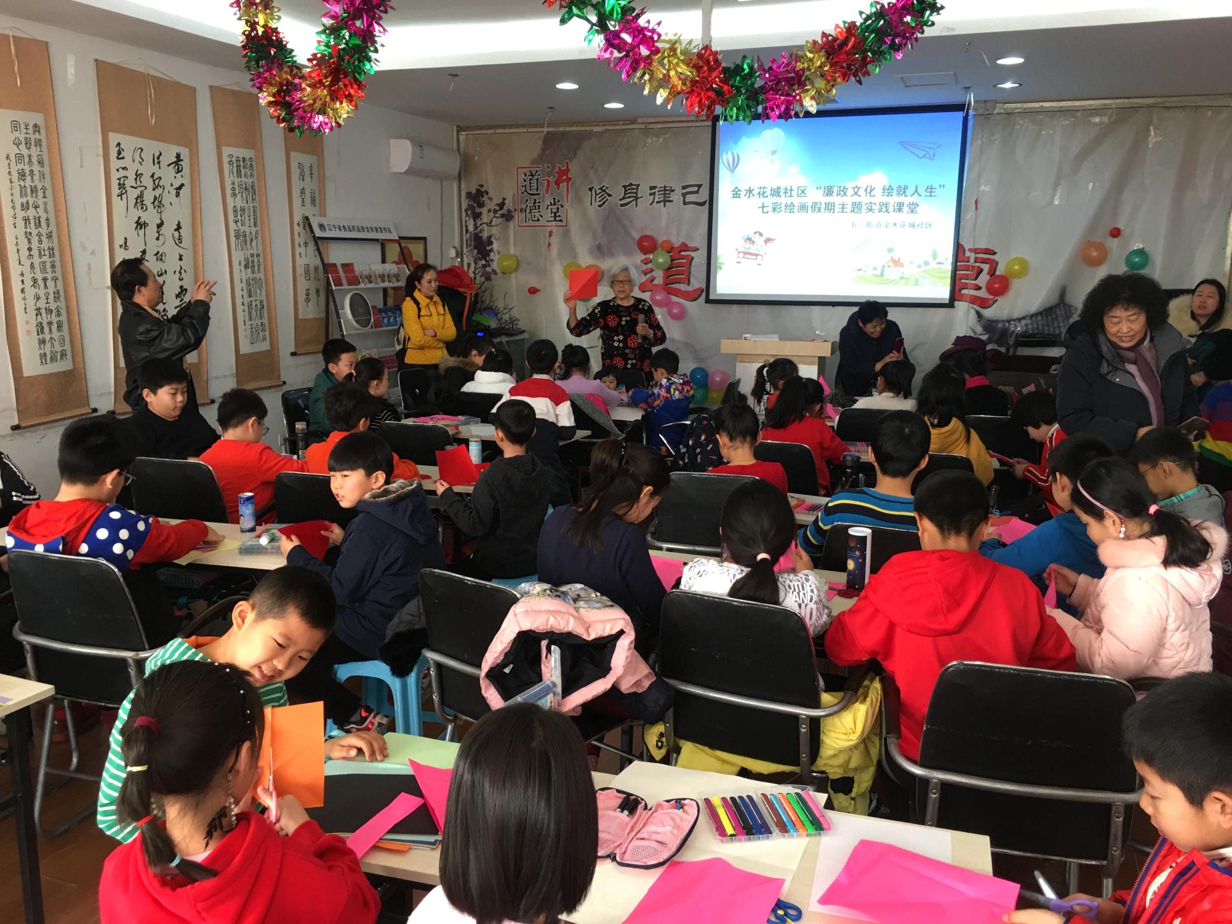 五三街道金水花城社区“廉政文化绘就人生”剪纸绘画假期实践课堂