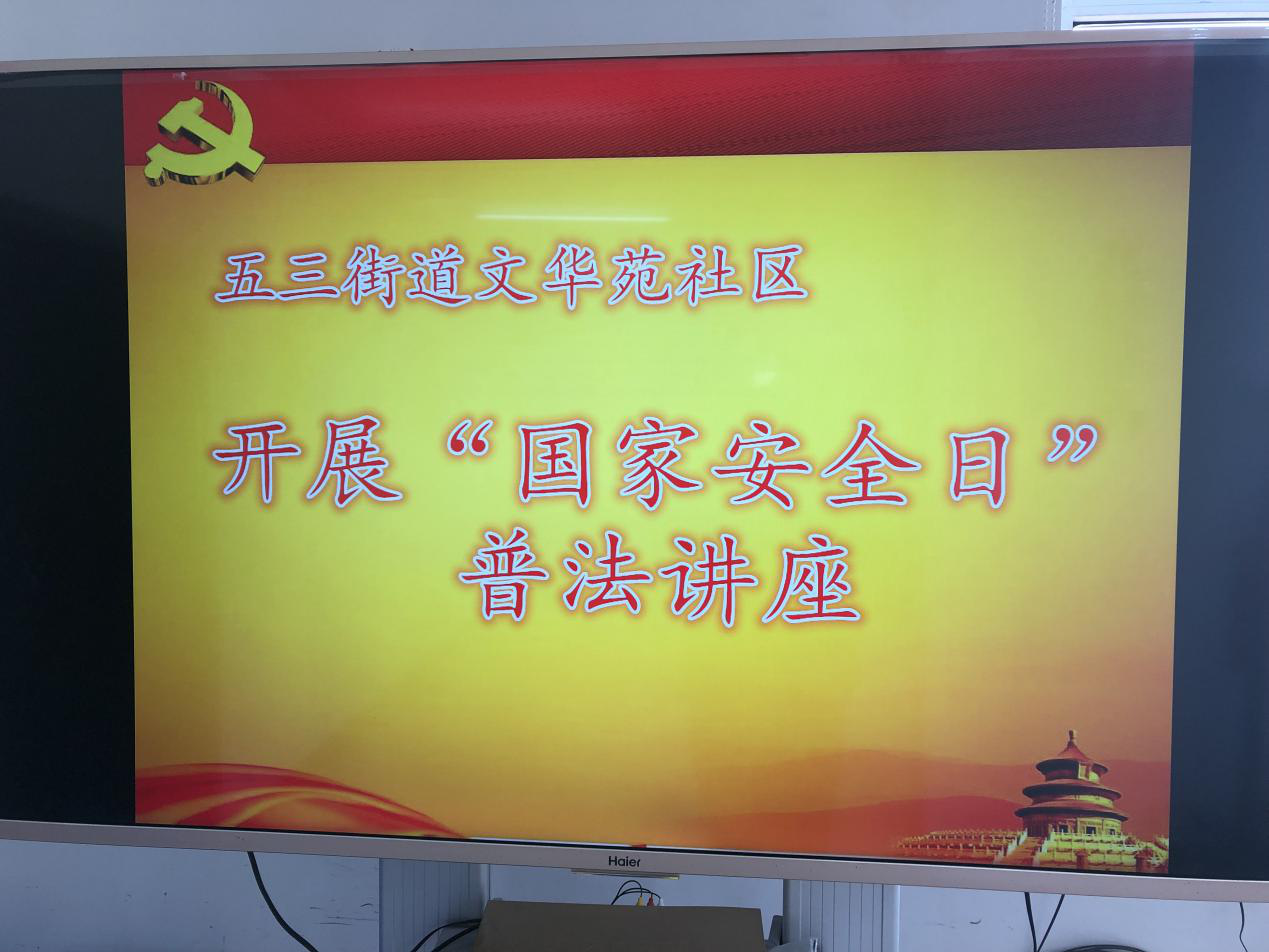 家是最小国,国是千万家。今年4月15日是第4个全民国家安全教育日,为进一步增强广大群众的国家安全意识,推动国家安全宣传教育工作深入开展,近日,五三街道司法所联合一雷律师事务所,在优品天地社区、文华苑社区、富都丽景社区、嘉华社区、金地社区开展了"国家安全日"专题普法宣传讲座。
