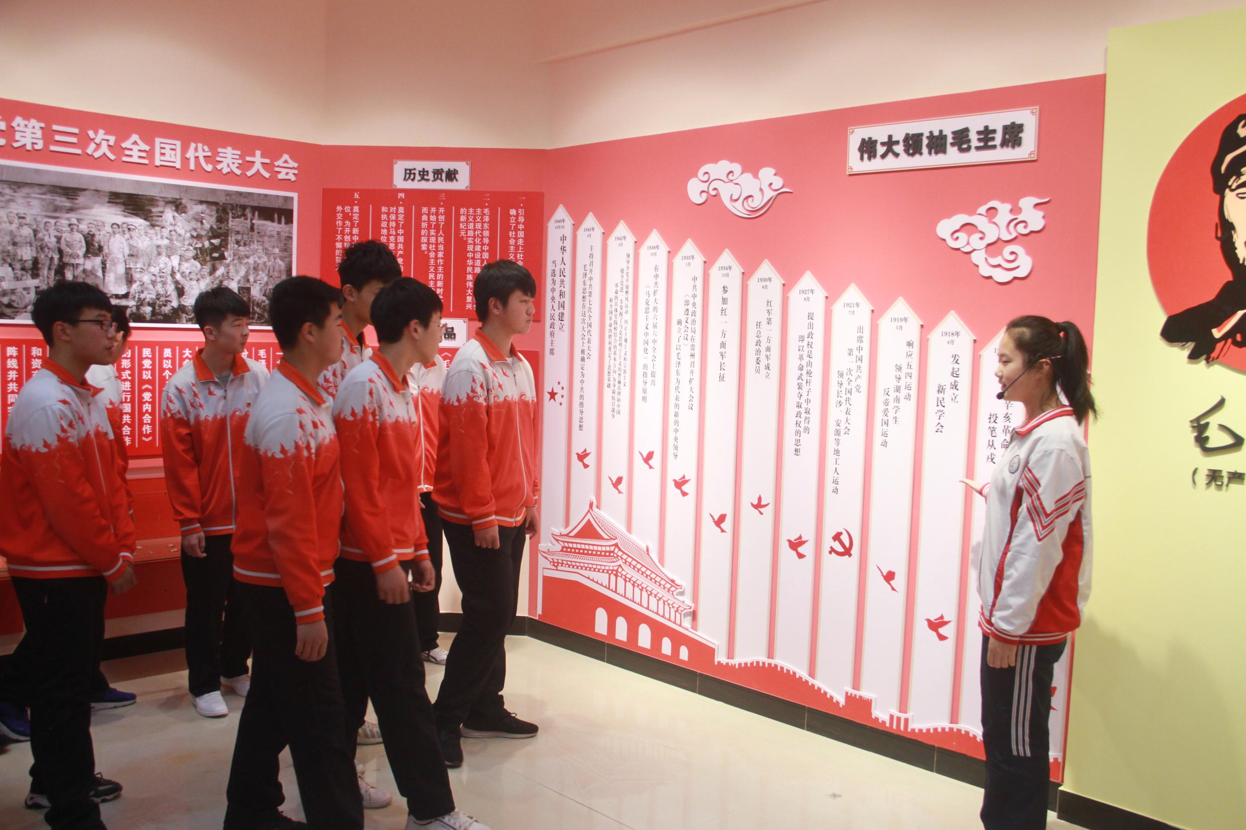 活动中,全区200名新入团团员的代表,共同参观了高坎中学的红史馆与毛主席诗词走廊。红史馆是区教育局为全区中小学生打造的红色基因教育基地,展馆内容以毛泽东主席的成长为主线,分别记述了共产党从建党伊始,到第一次国共合作、五次反围剿、红军长征、抗日战争、解放战争和新中国成立等历史和介绍毛主席视察高坎的历史和高坎镇的发展简介。通过重温红色历史,让学生目睹硝烟迭起时,共产党人的蹈火赴汤,感叹华夏英雄的盖世忠魂,更加明确了作为一名新时代共青团员所肩负的历史使命。