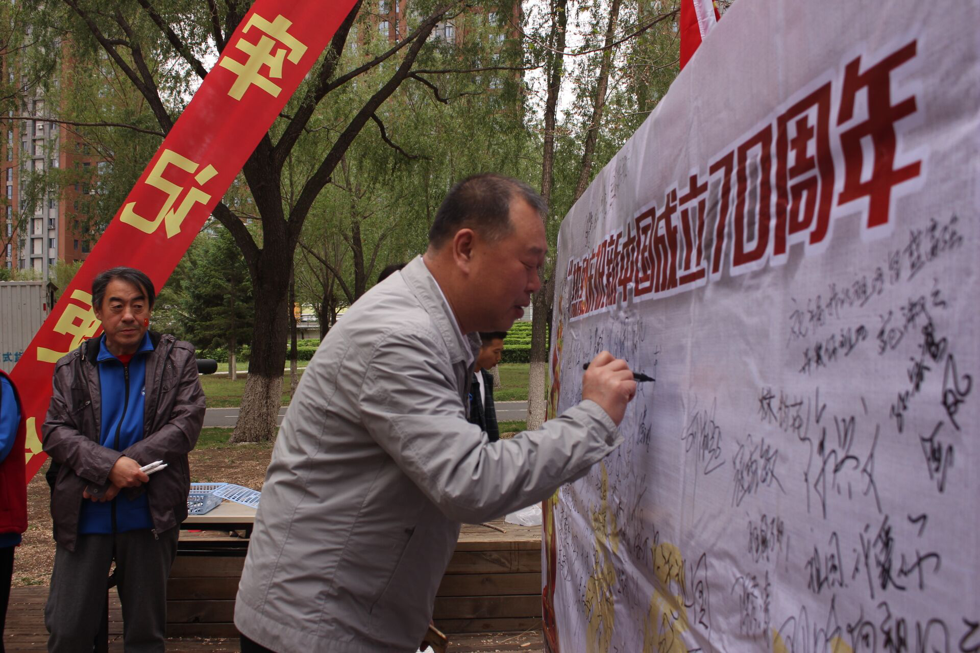活动开始设置告白板,与会人员实名签字,向党和祖国写下告白语,党员代表、志愿者代表、社工代表向党和祖国告白发言,共同祝福祖国富强民主、国泰民安、繁荣昌盛。现场人员、慕名而来的居民以及公园里散步的路人快闪《我和我的祖国》,徐徐道来而又激情澎湃,我和我的祖国一刻也不能分割。同时,活动现场设置志愿服务站现场服务,包括东北国际医院惠民义诊、浑南区民盟心理咨询服务、社区工会志愿者提供免费饮用水和义务自行车打气服务等。