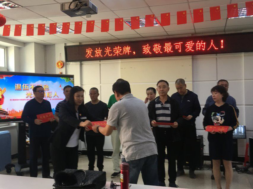 “光荣之家”门牌是军人家庭身份的标志,是党和政府推进军人荣誉体系建设的重要举措。近日,五三街道富都丽景社区按照上级要求,积极组织工作人员走访看望辖区退役军人,并在社区活动室进行了题为“退伍不褪色,光彩照后人”的光荣牌发放仪式。