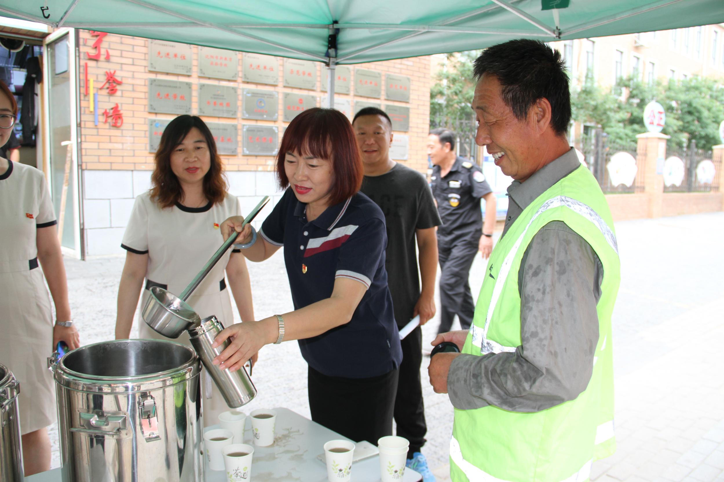 大会结束后,党支部联合学校工会、德育处走上街头开展了一次“向环卫工人致敬”主题志愿服务献爱心活动。蒙蒙细雨中,党政班子及志愿者们为近百名环卫工人送上毛巾和热腾腾的绿豆水,环卫工人们感动的说:“浑南四小这项活动已经延续好多年了,我们在这里真正感受到了什么是被尊重……”