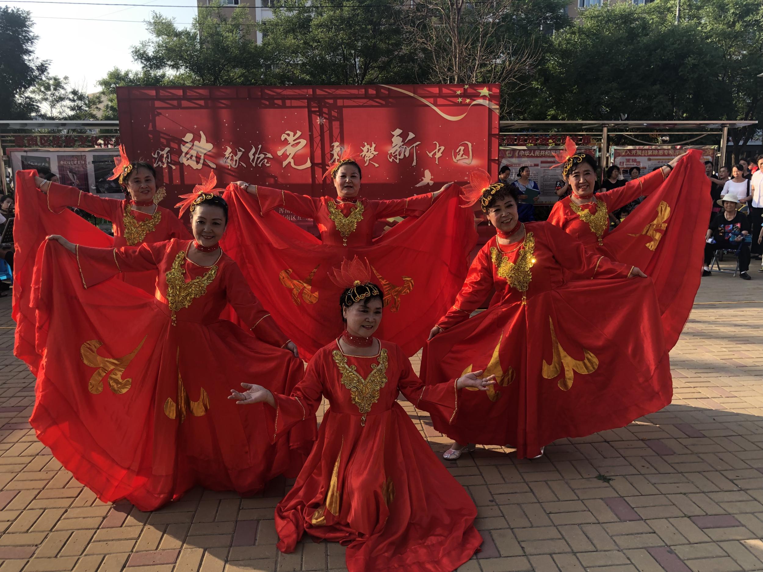 美丽而宽广的国度,勤劳而坚强的民族,开场舞《祖国颂》拉开了文艺汇演的序幕;《祝福祖国》、《庄稼院的歌》《国峰》唱出了居民心中对祖国最真挚的爱,最深的祝福;京剧《沙家浜》选段《军民鱼水情》、评剧《茶瓶记》、京剧《红灯记》选段《学你爹心红胆壮志如钢》,以传统剧目的形式,凸显了传统艺术的魅力,展现了居民对祖国的深情厚爱;吉他弹唱《南山南》、《倔强》,展现了新时代青年人的风采;模特《风雨江南情》、舞蹈《江山》、《绒花》、《祖国你好》、《烟花三月下扬州》、《两座山》、《九儿》等,时而柔美的舞姿,时而潇洒利落的转身,将演出氛围推向了高潮;《我祝祖国三杯酒》、《我和我的祖国》、《走向复兴》等合唱,唱出了中华民族伟大复兴的中国梦,唱出了我和我的祖国,一刻也不能分割的爱。