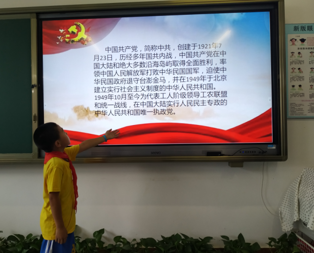 当天下午,学校组织全体学生进行了以“红领巾心向党争做新时代好队员”主题班队会。在班队会上,全体学生在教师的带领下进一步了解了中国共产党的来历和带领全国人民艰苦奋斗、砥砺前行所取得的巨大成就。我校还请长辈是老一代共产党员的学生,为同学们自豪地讲述了老一辈共产党员为了建设祖国,与人民共奋进的故事。