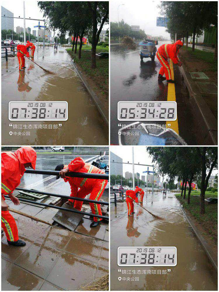 截止至8月12日下午,清运清扫队共出动防汛泵车5台,大翻5台,人员倒班110人次,安排8名司机随时待命,时刻保持通讯畅通,在重要险情时做到第一时间排除隐患。