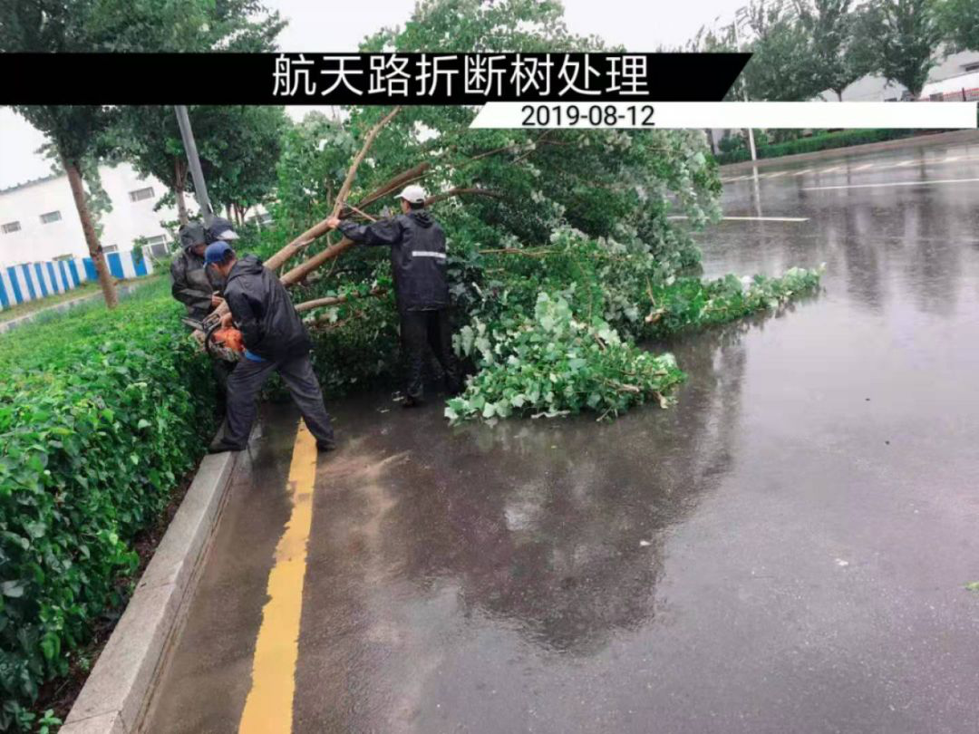 城市管理局绿化监管中心按照局统一部署,组织队伍和调配设备,全部投入到重点街路、公园、广场进行巡视检查。对存在安全隐患的树木进行加固处理;对影响交通的倒伏树木、折枝进行处理;能扶起来的树木及时扶正和加固处理,保障好道路的畅通和市民的出行安全。