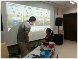 精心设计的有奖问答和互动环节,让小朋友们兴趣盎然,简直就是一场头脑小风暴。四个分类垃圾桶,每一位小朋友都要把标有不同垃圾的卡片放入相应的桶内,小朋友们积极参与,叽叽喳喳的互相讨论,大声喊着“放错啦”、“纸巾是其他垃圾里的”……有趣的互动,增强了垃圾分类的体验感和真实性,热烈的现场气氛也引得陪孩子们来的家长们发出阵阵笑声。“变废为宝”环节教大家如何利用废旧物变成有用的装饰品或小工具等。