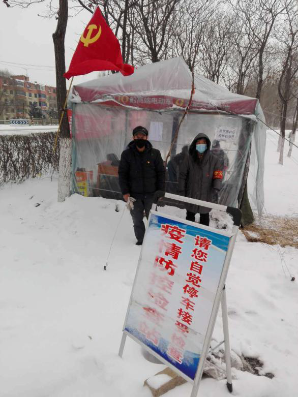 2月16日,沈阳市一夜降温10摄氏度,被风雪笼罩,寒气十足。尽管天气条件欠佳,但高坎街道全体党员干部仍坚守岗位,疫情防控工作没有丝毫懈怠。