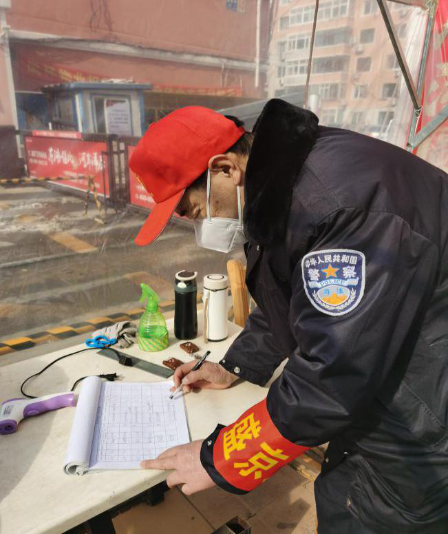 老孟又上了一线。作为老同志,他主动选择任务重、风险高的岗位,把压力小、人流少的小区分配给其他同事。他所包保的凤祥小区约3000户,每日3000多人、500余车辆日常流动。特别是该小区前期未封闭管理,为此次疫情防控带来了很多困难。面对居民对封闭园区的不理解,老孟充分发挥多年的法律宣传与人民调解工作经验,他在园区里进行防疫宣传,发放《致全区居民的一封信》《倡议书》等500余份,提升居民对疫情防控工作重要性的认识及相关防疫法律法规的了解,主动化解矛盾纠纷20余起。每日他还要协助小区物业进行人员登记、测温500余次,为该小区疫情防控做出了默默无闻的贡献。当社区居民及社会志愿者知道老孟还有10多天就要退休的时候,都向他竖起了大拇哥儿。老孟说,“疫情不退,我就退休不退岗,坚持为人民服务。”