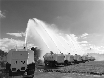 别担心,这并不是真实火情,而是市自然资源局、浑南区人民政府、沈阳棋盘山国际风景旅游开发区管委会在棋盘山景区冰雪大世界停车场区域联合开展的处置森林火灾实战演练。9月17日下午,随着模拟火情蔓延,灭火弹、远程多管灭火系统、消防水车水炮、大型消防水车、履带式森林消防车等一系列先进森林消防装备悉数登场,“大火”最终在消防人员的共同努力下被成功扑灭。