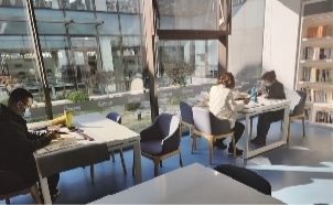 臧先生:这里平时是非常安静的,很适合静心练字,我们选择的地方靠近一楼中庭的玻璃幕墙,阳光也特别好。总的来说,很方便,很惬意。