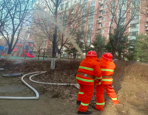 本次消防演练活动分为预防火灾知识讲解、现场示范、模拟火情灭火等多个环节。演练过程中,首先由消防专业人员用通俗易懂的语言向大家讲解了火灾的发生及危害、日常生活中如何检查和整改火灾隐患等知识,具体介绍了灭火器的使用方法、消防水带的展开连接、人员安全疏导以及在发生火灾事故后的基本扑救方法,向大家普及消防安全知识。随后,消防专业人员现场示范使用灭火器,并邀请社区居民体验灭火器灭火的操作方法,对不规范、不正确的操作进行了纠正和指导,参与人员均学会了灭火器的使用方法。
