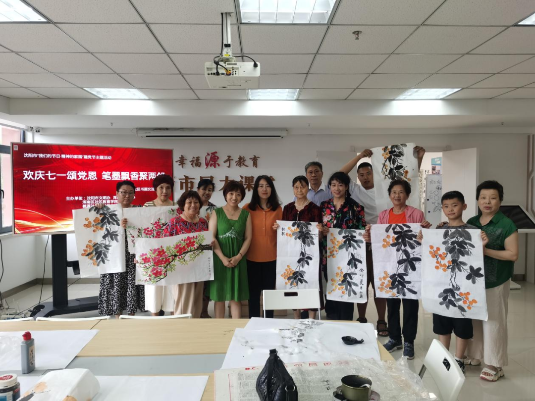 近日,桃仙街道桃源社区举办“欢庆七一颂党恩 笔墨飘香聚两邻”书画交流活动,吸引了社区众多国画、书法爱好者前来参加。