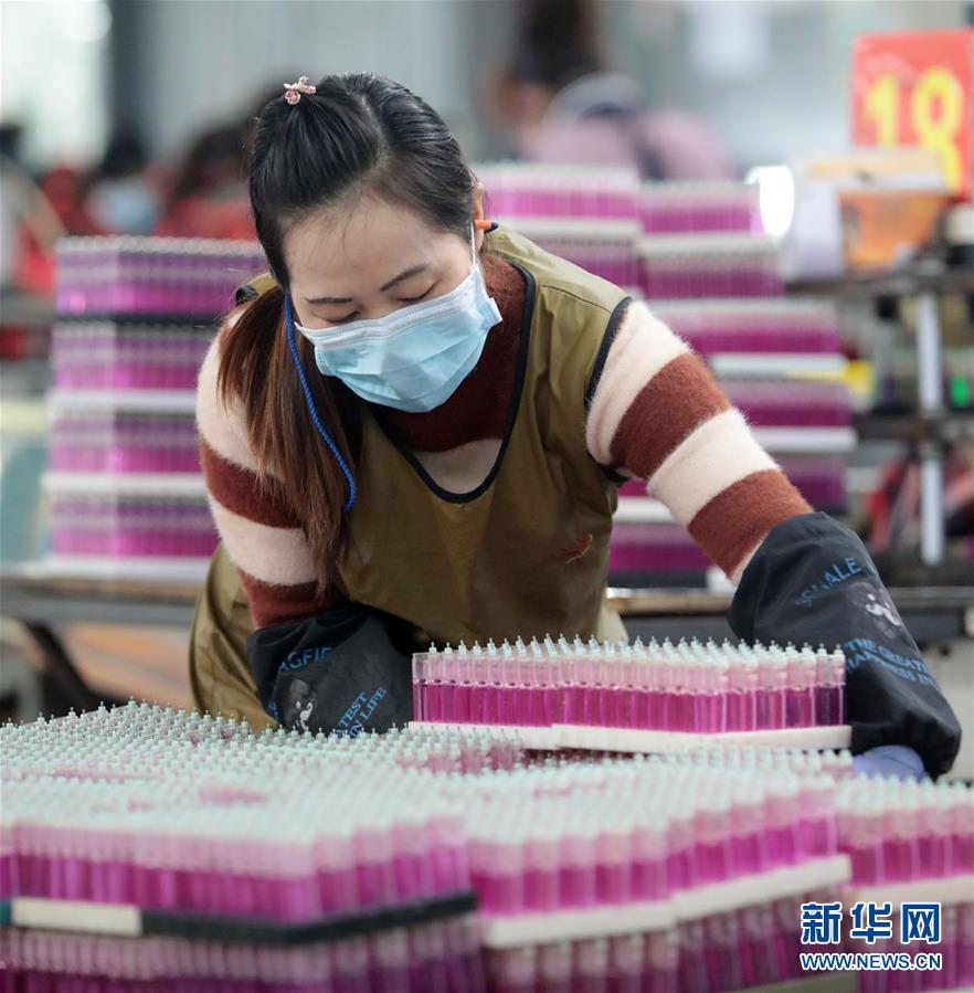 3月3日,工人在贵州省铜仁市大龙经济开发区一家扶贫工厂的打火机生产线上忙碌。 近日,多地企业在做好疫情防控工作的基础上组织工人有序复工,抓紧生产。 新华社发(欧秀灯 摄)