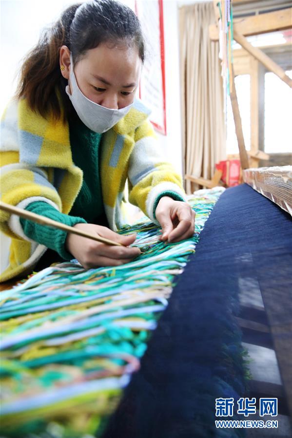 3月2日,在重庆市黔江区小南海镇“西兰卡普扶贫工坊”,员工在赶制西兰卡普订单。 近日,多地企业在做好疫情防控工作的基础上组织工人有序复工,抓紧生产。 新华社发(杨敏 摄)