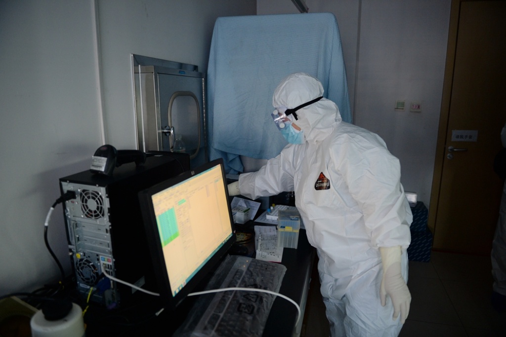 在检测过程中,为少上或不上厕所,检测人员要做到不吃不喝。据了解,检测过程包括取样、样本灭活、试剂准备、标本制备、检测、设备消毒等步骤,一般需要近6个小时。