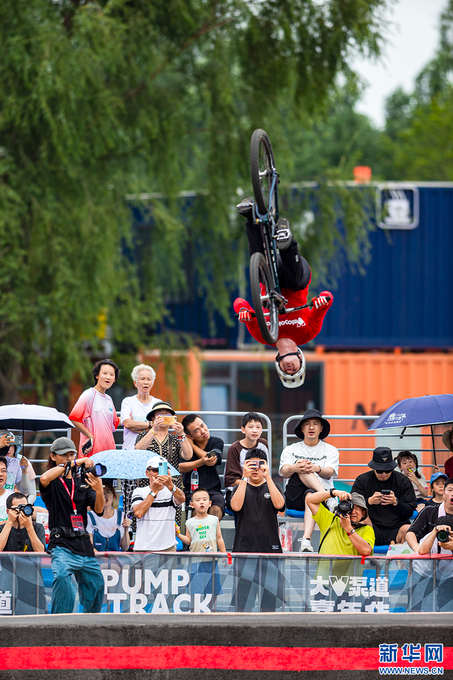新华网沈阳7月30日电(唐晓瑭)飞驰、压弯、腾跃……7月29日,2023UCI泵道世锦赛中国预选赛沈阳站在位于中德(沈阳)高端装备制造产业园西峡湾的沈阳国际泵道公园内开赛。