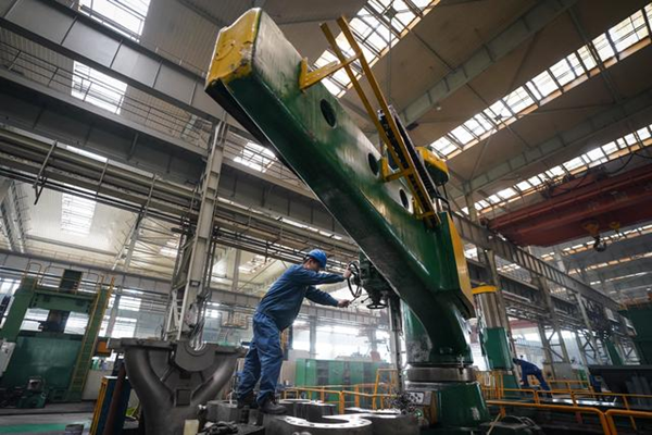 2月14日,沈鼓集团股份有限公司的工人在车间工作。新华社记者潘昱龙摄