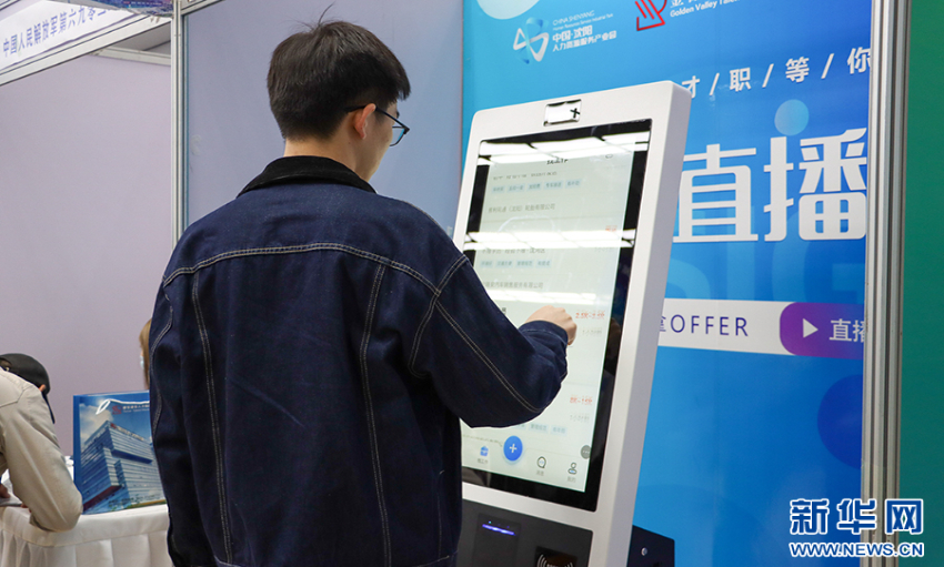 求职者利用沈阳人才产业园内的用工平台浏览招聘岗位。沈阳人才产业园供图