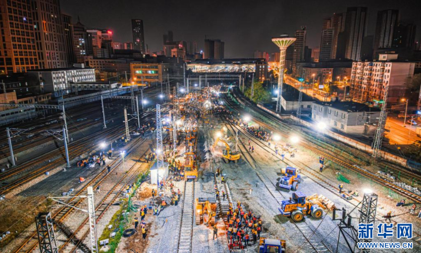 5月25日拍摄的沈白高铁并入沈阳北站施工现场(无人机照片)。新华网发 张钧禹摄