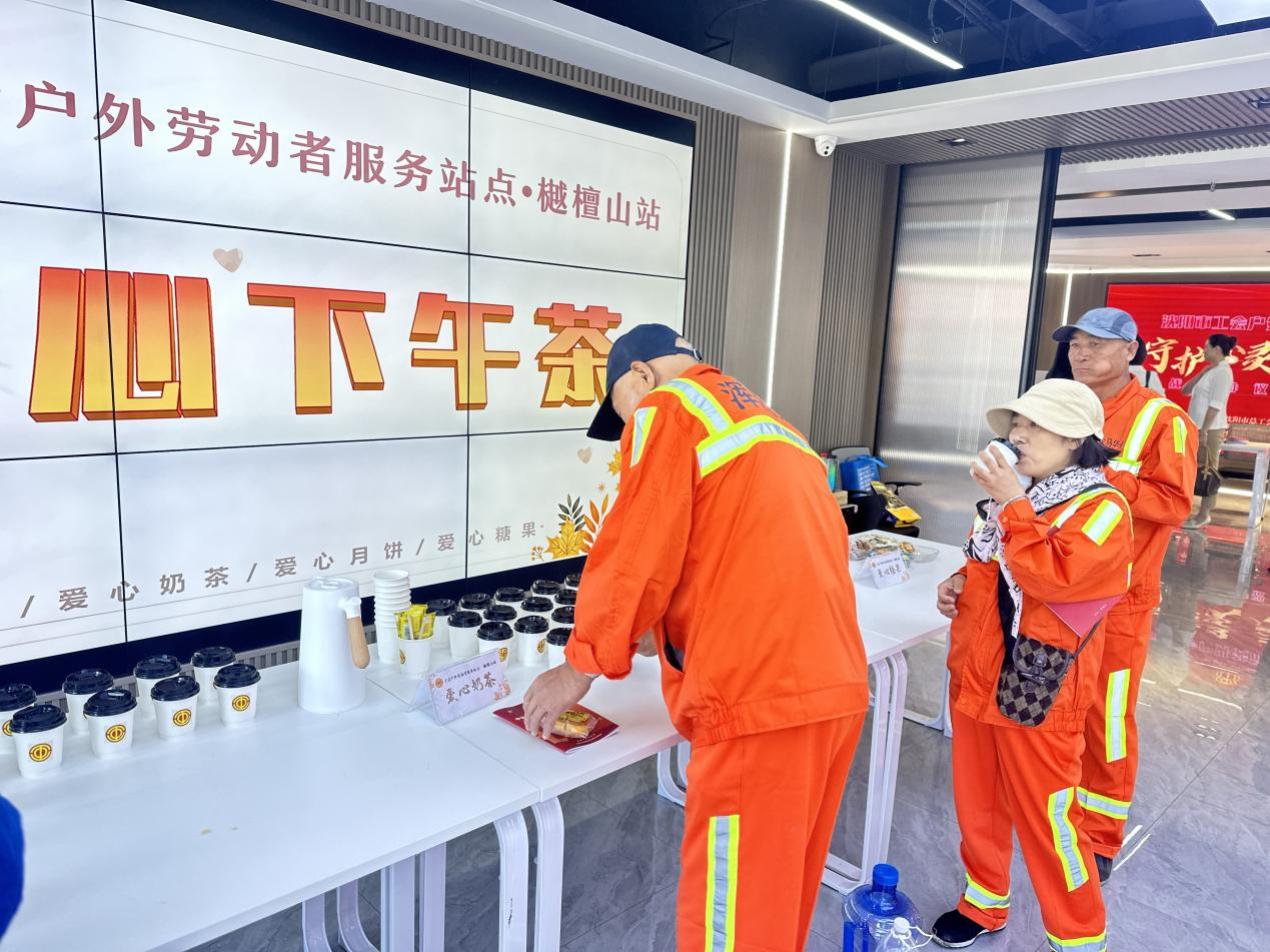 近日,为关爱户外劳动者群体,浑南区总工会与浑河站东街道樾檀山社区联合共建的工会户外劳动者服务站点·樾檀山站举办 “爱心下午茶”活动,为周边的户外劳动者送去一份温暖的关怀。