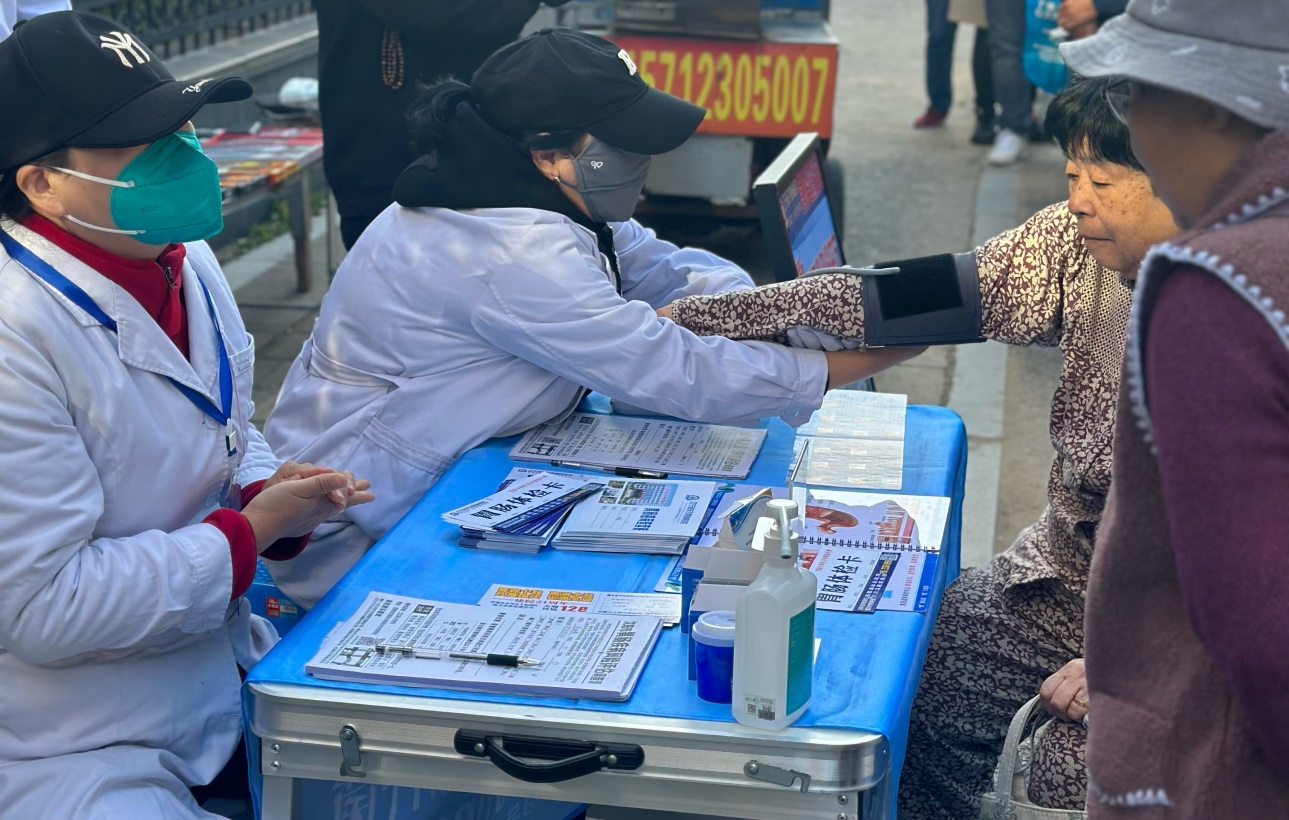 在爱心义诊摊位,血压测量、眼健康筛查等医疗服务一直深受老年居民的欢迎,现场医生耐心为每位居民进行健康分析讲解,普及和宣传科学健康饮食及生活方式。