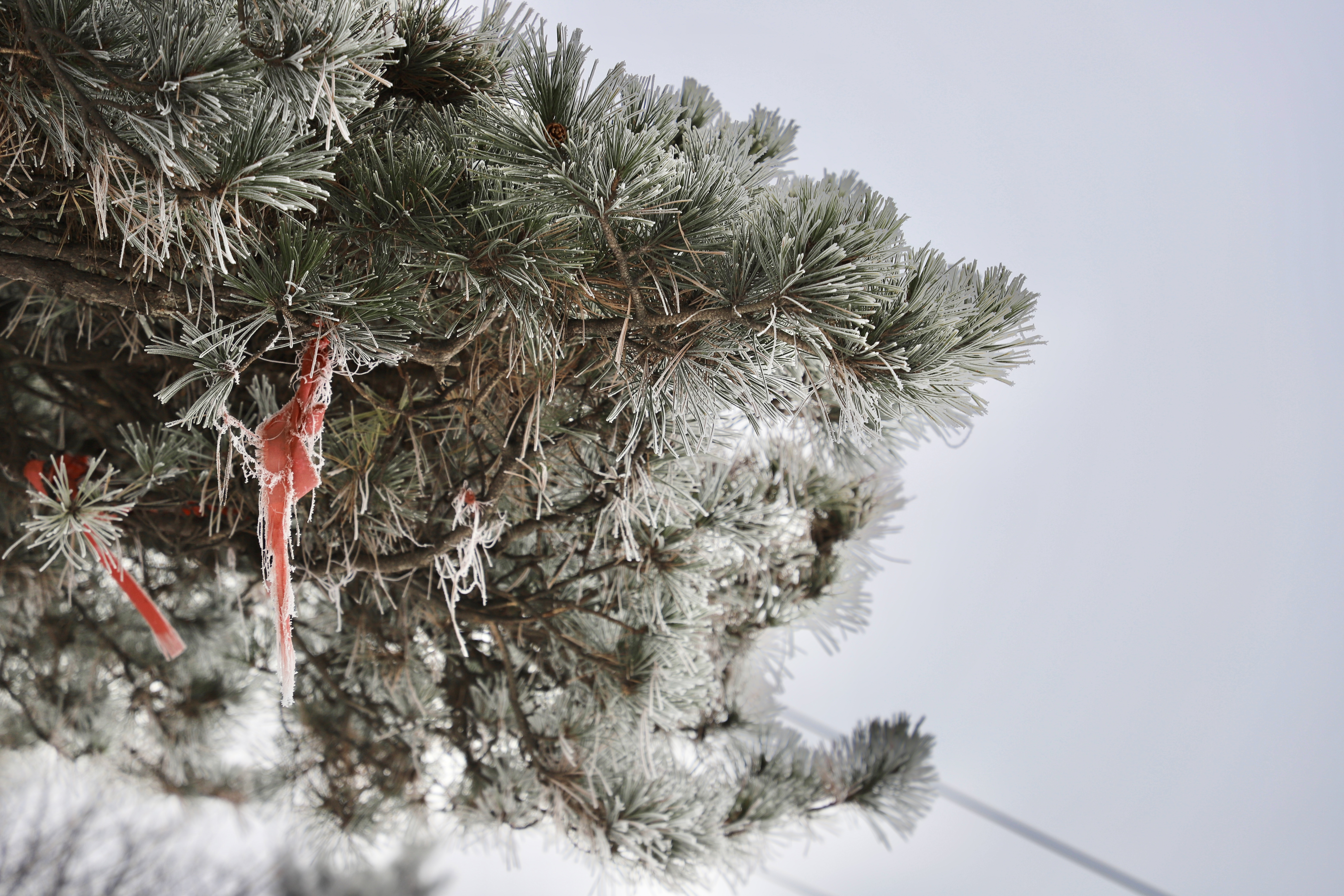 雾凇非冰非雪,俗称冰花、树挂等,是低温时空气中水汽直接凝华,或过冷雾滴直接冻结在物体上的乳白色冰晶沉积物,它的形成需要温度、湿度、风力、风向等诸多条件合理匹配,是非常难得的自然奇观。