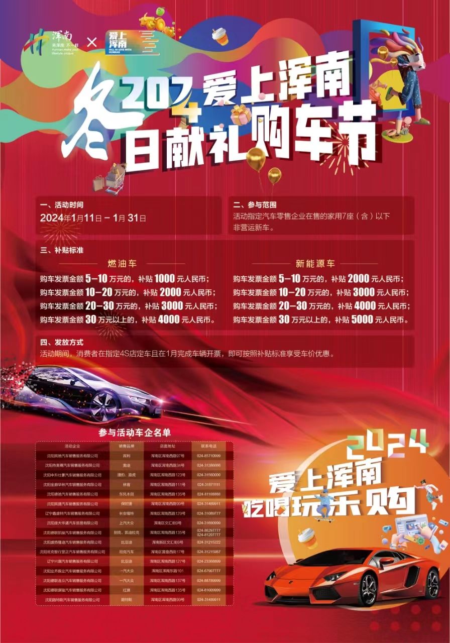 来浑南购车有豪礼!“2024爱上浑南—冬日献礼”购车节震撼来袭!