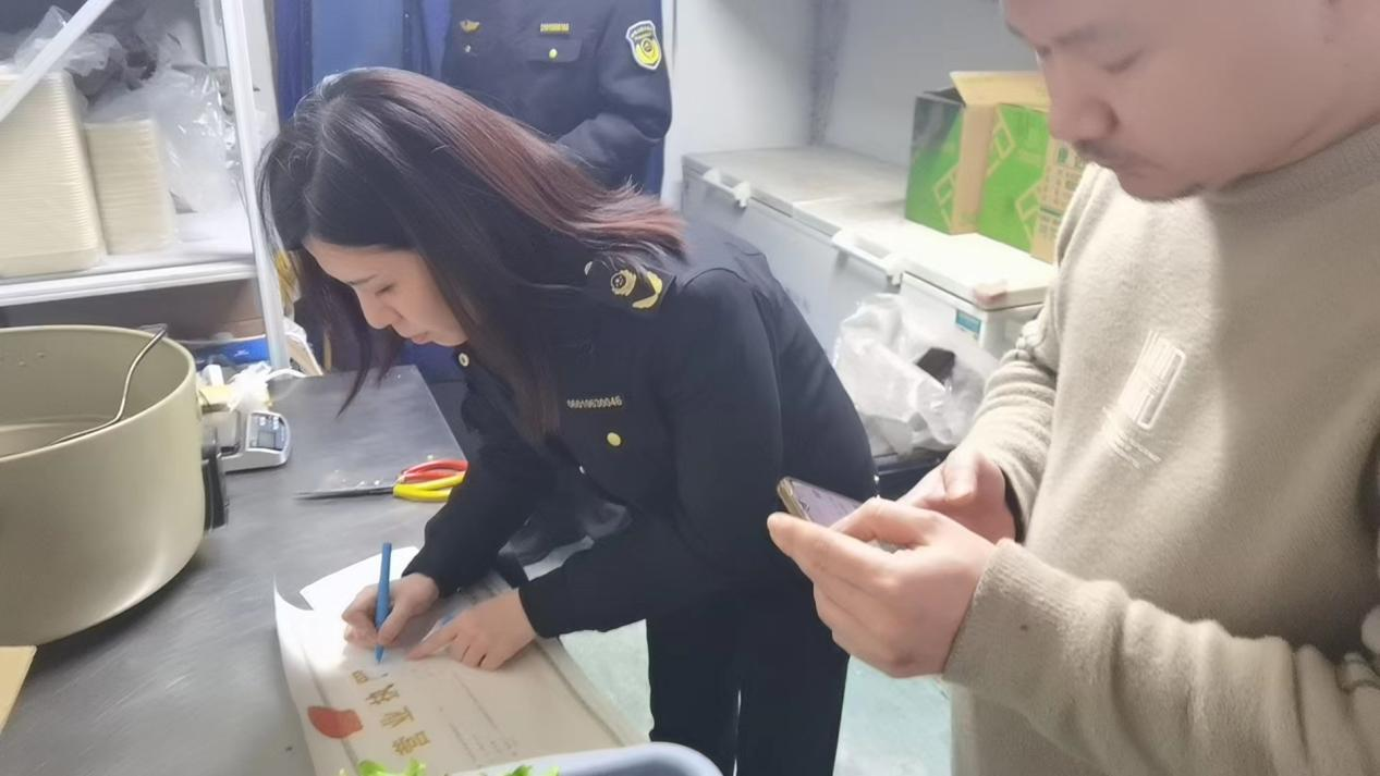 区市场局重点检查了外卖餐饮单位的卫生状况、食材质量、食品加工操作流程以及证照情况,深入了解了外卖店的实际运营情况。在检查过程中,监管人员发现部分外卖店存在卫生环境不佳、食材存储不规范等问题,对于情节较轻的商家,监管人员当即对其进行批评教育,指导其当场改正;针对问题较多的商户,现场责令其立即整改,并下达了《责令整改通知书》,后续监管人员将持续跟踪检查整改结果,如仍未改正,将对其进行处罚。