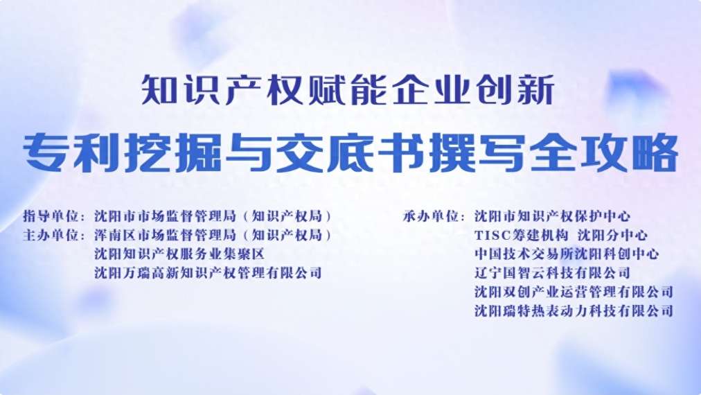 本次活动由沈阳市市场监督管理局(知识产权局)指导、浑南区市场监督管理局(知识产权局)、沈阳知识产权服务业集聚区及沈阳万瑞高新知识产权管理有限公司联合主办,沈阳市知识产权保护中心、沈阳双创产业运营管理有限公司等多家单位共同承办。